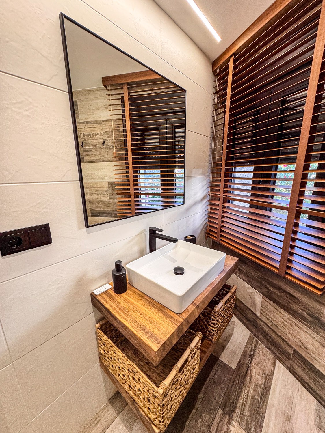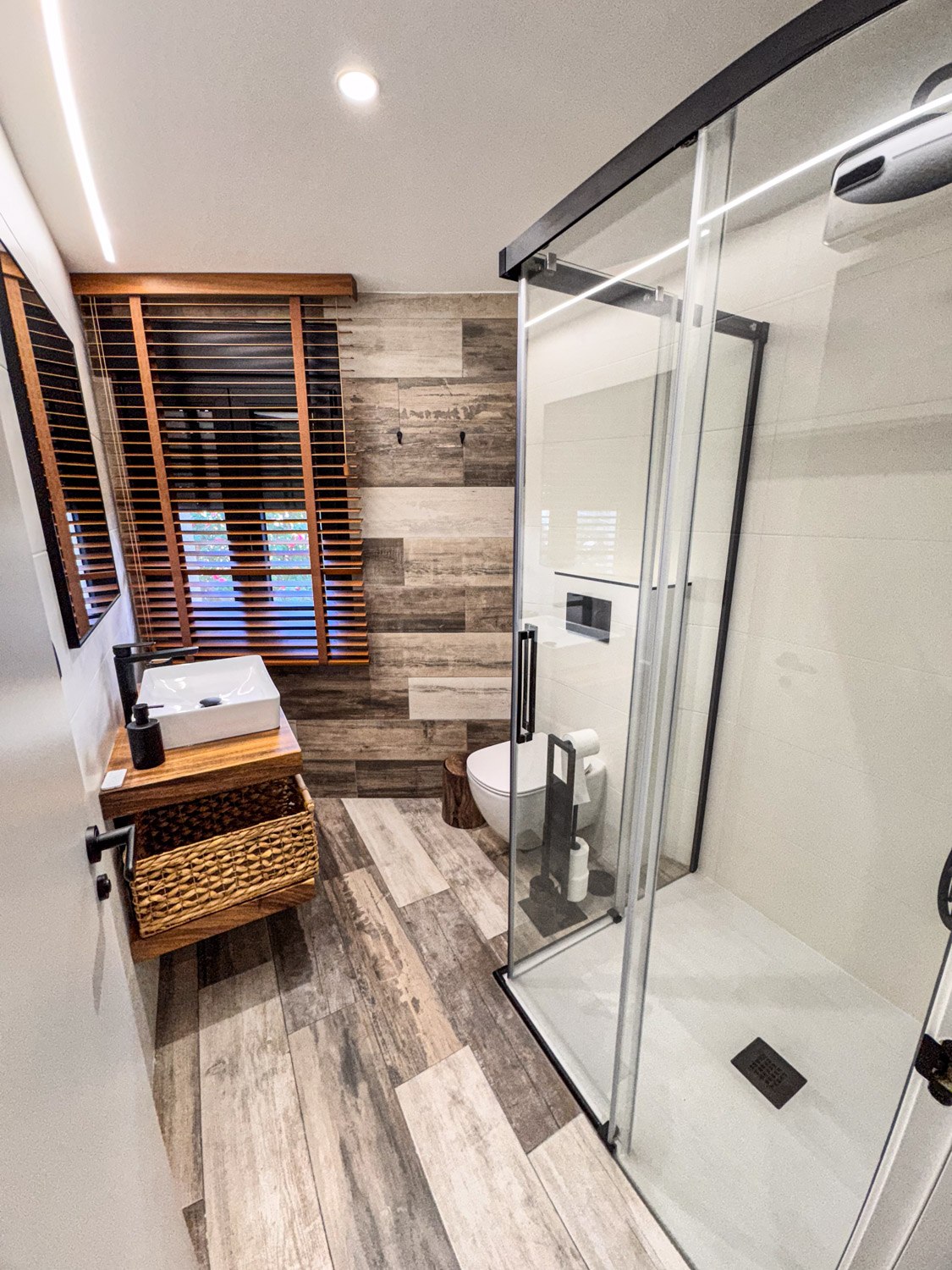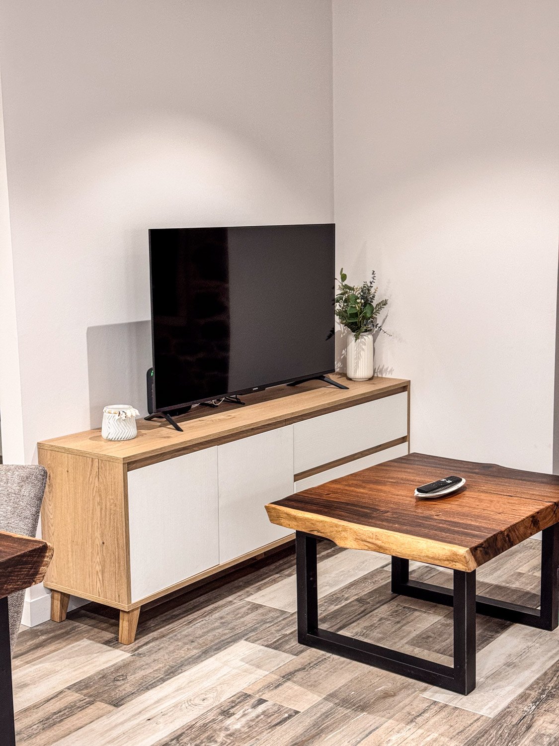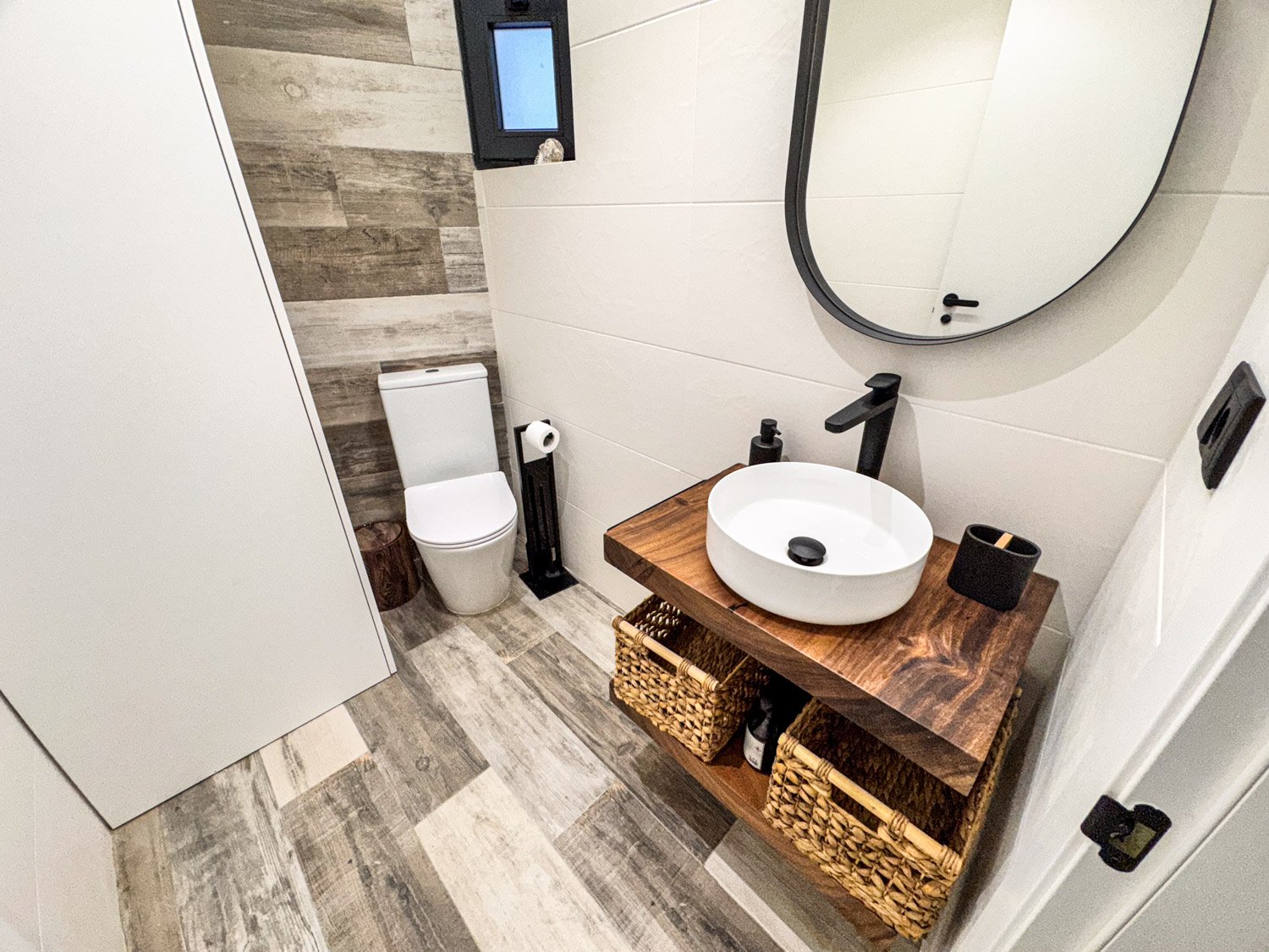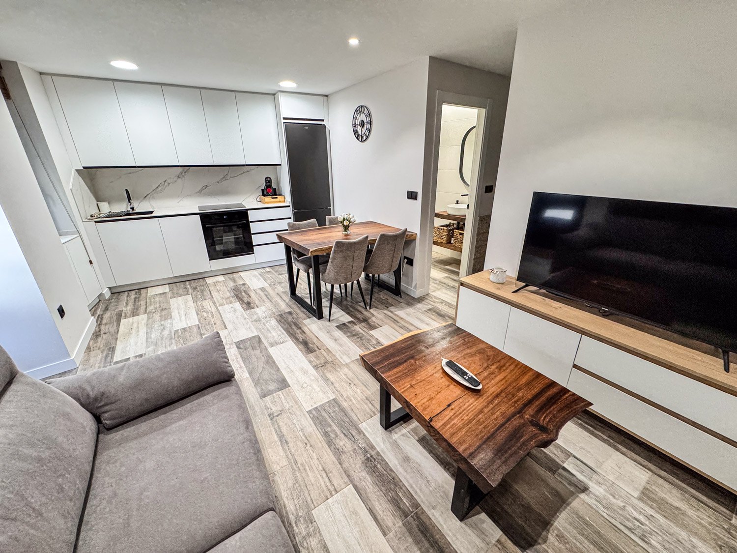 La casa cuenta con dos habitaciones confortables y dos baños completos, pensados para asegurar una estancia práctica y agradable. El corazón de la vivienda es un amplio y luminoso salón-cocina, donde encontrarás un sofá muy cómodo y una televisión plana de 50 pulgadas. La cocina está equipada con todos los electrodomésticos necesarios para que puedas preparar tus comidas y sentirte como en casa desde el primer día.